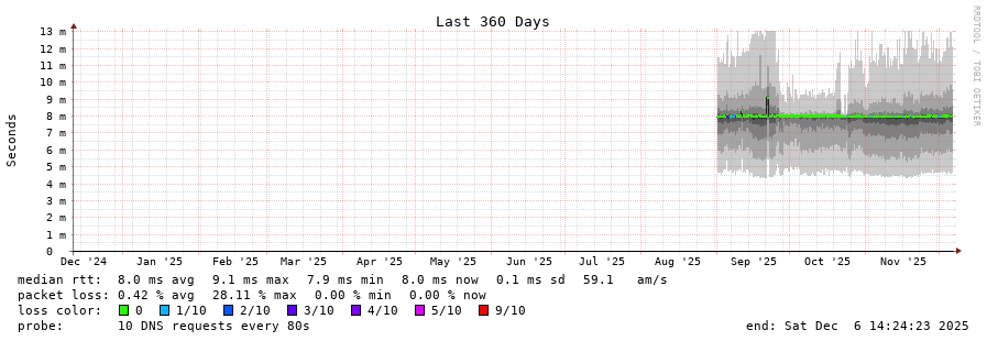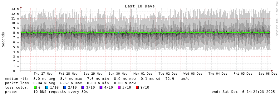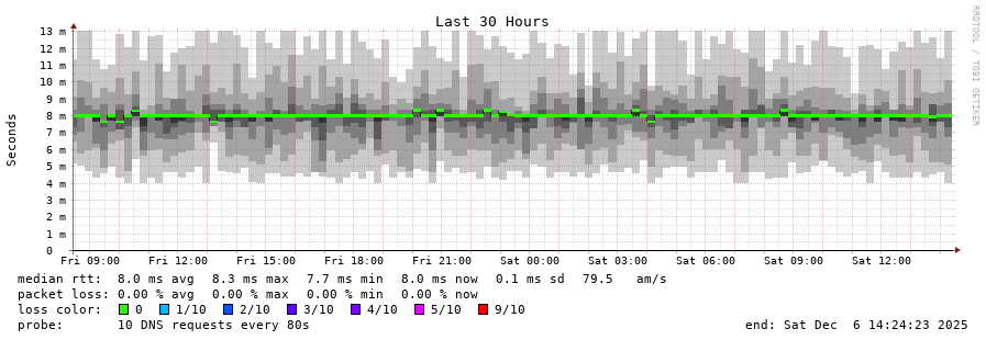 traceroute to 2620:fe::fe (2620:fe::fe), 30 hops max, 80 byte packets - Generated at 2025-12-06 14:15:01