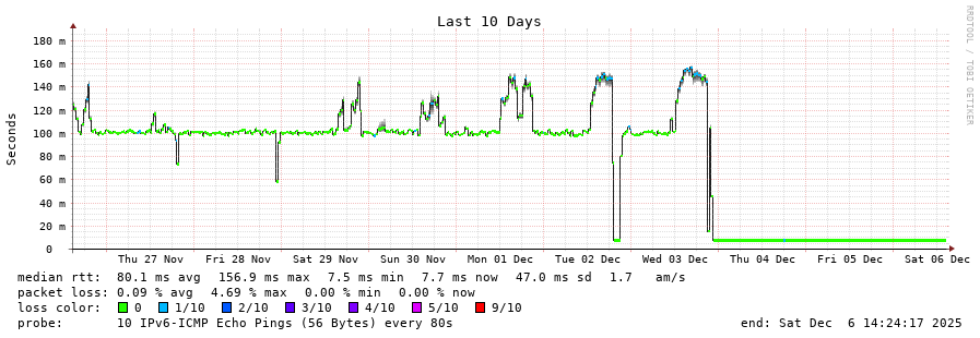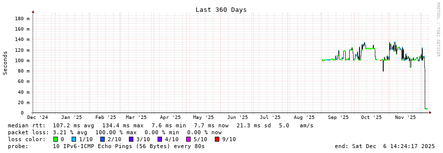 traceroute to 2620:119:53::53 (2620:119:53::53), 30 hops max, 80 byte packets - Generated at 2025-12-06 14:15:01