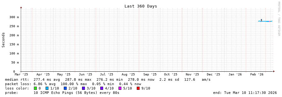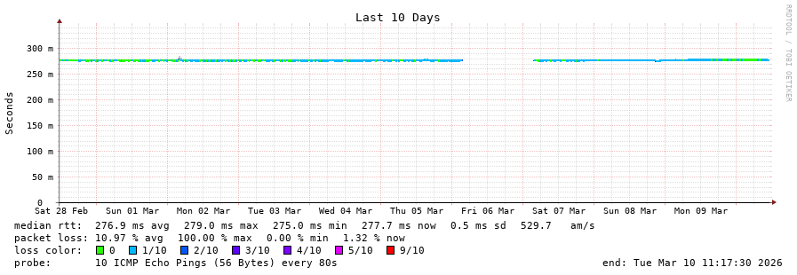 19 > 175.111.178.107 (175.111.178.107) [AS134090] 277.360ms 277.381ms 277.053ms