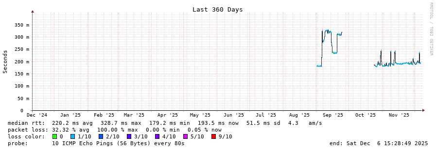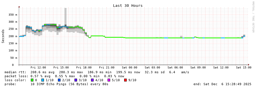 traceroute to 122.160.40.1 (122.160.40.1), 30 hops max, 60 byte packets - Generated at 2025-12-06 15:15:01