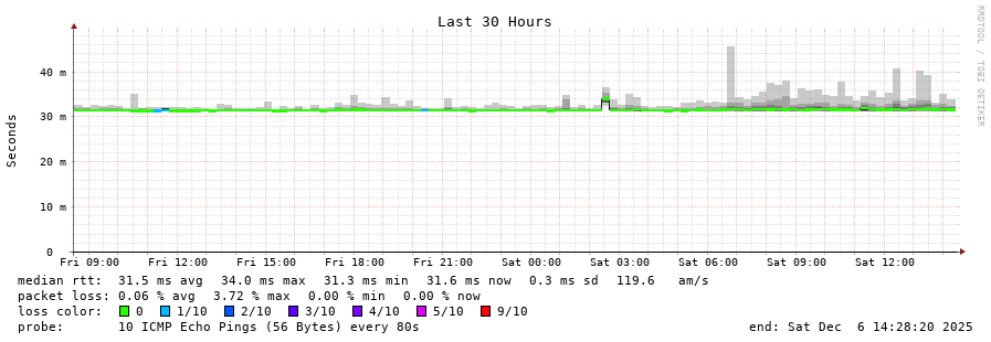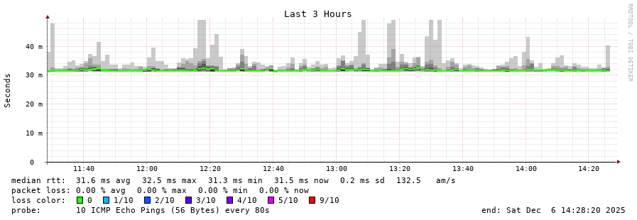 6 > ffm-bb1-link.ip.twelve99.net (62.115.143.29) [AS1299] 27.641ms 27.666ms 27.673ms