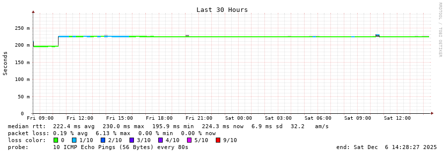 17 > 175.100.195.250 (175.100.195.250) [AS9304] 212.208ms 212.194ms 212.198ms