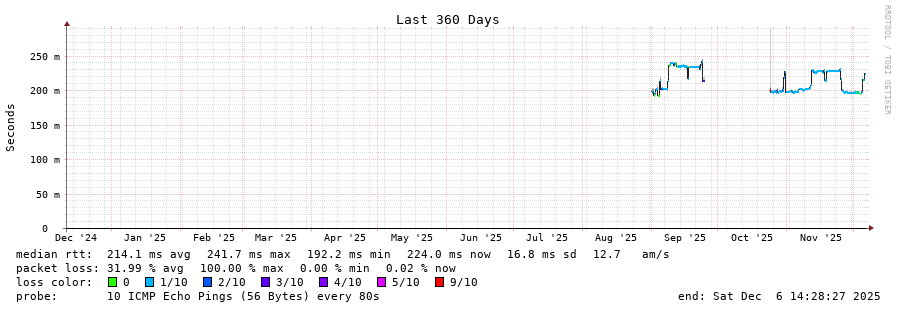 traceroute to 202.56.84.1 (202.56.84.1), 30 hops max, 60 byte packets - Generated at 2025-12-06 14:15:01