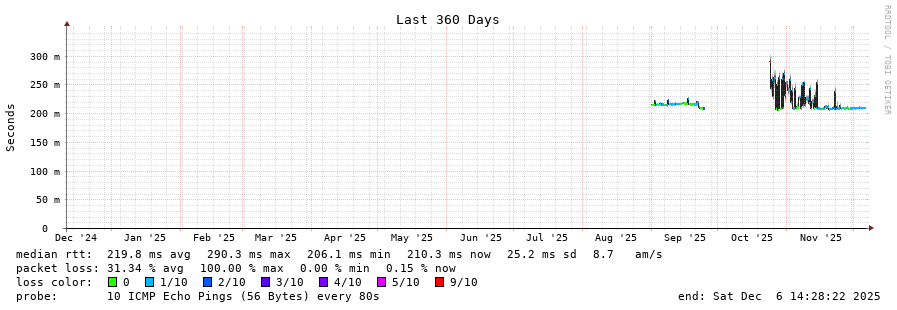traceroute to 203.154.249.2 (203.154.249.2), 30 hops max, 60 byte packets - Generated at 2025-12-06 14:15:01