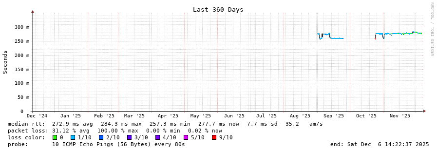 13 > unknown.telstraglobal.net (202.84.130.20) [AS4637] 275.999ms 275.950ms 275.951ms