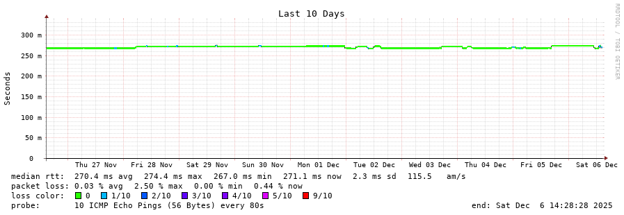 11 > wtsc3a073.netvigator.com (218.102.40.73) [AS4760] 267.077ms 267.090ms 267.040ms