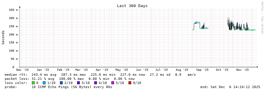 traceroute to 49.255.0.1 (49.255.0.1), 30 hops max, 60 byte packets - Generated at 2025-12-06 14:15:01