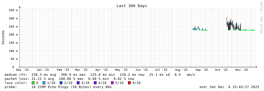 traceroute to 203.153.224.42 (203.153.224.42), 30 hops max, 60 byte packets - Generated at 2025-12-06 15:30:01