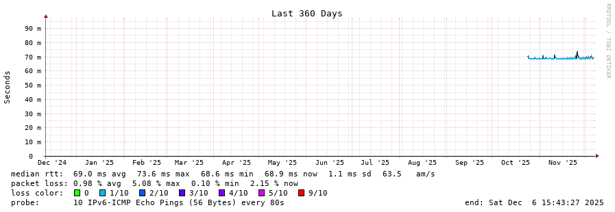 traceroute to 2c0f:5400:2:15::1 (2c0f:5400:2:15::1), 30 hops max, 80 byte packets - Generated at 2025-12-06 15:30:01
