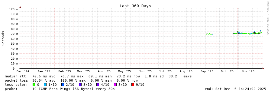 traceroute to 5.158.0.1 (5.158.0.1), 30 hops max, 60 byte packets - Generated at 2025-12-06 14:15:01
