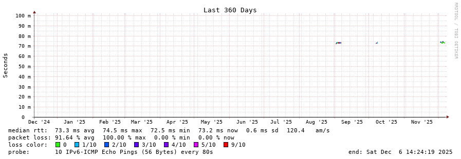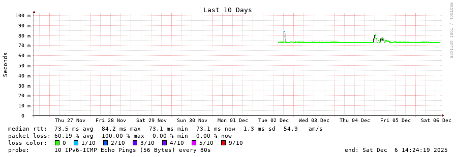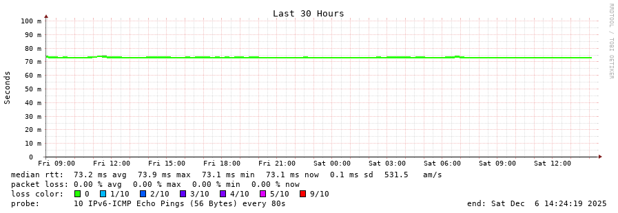 traceroute to 2001:690:1fff:1600:eade:27ff:fec9:67ec (2001:690:1fff:1600:eade:27ff:fec9:67ec), 30 hops max, 80 byte packets - Generated at 2025-12-06 14:15:01