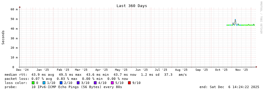 traceroute to 2001:b68:d:0:ee08:6bff:fe73:2da0 (2001:b68:d:0:ee08:6bff:fe73:2da0), 30 hops max, 80 byte packets - Generated at 2025-12-06 14:15:01