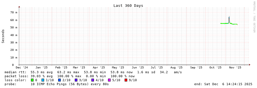 traceroute to 85.114.53.205 (85.114.53.205), 30 hops max, 60 byte packets - Generated at 2025-12-06 14:15:01