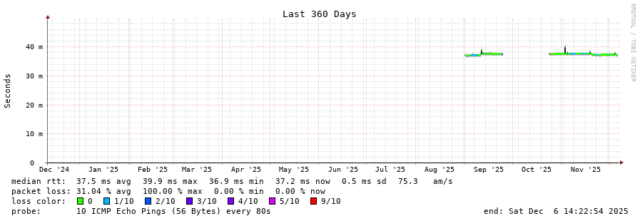 traceroute to 195.40.1.250 (195.40.1.250), 30 hops max, 60 byte packets - Generated at 2025-12-06 14:15:01