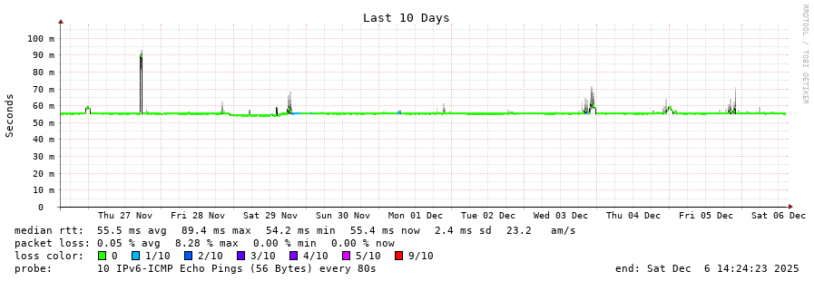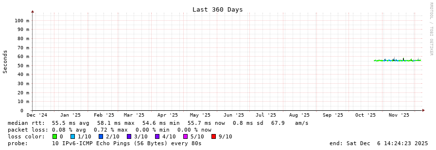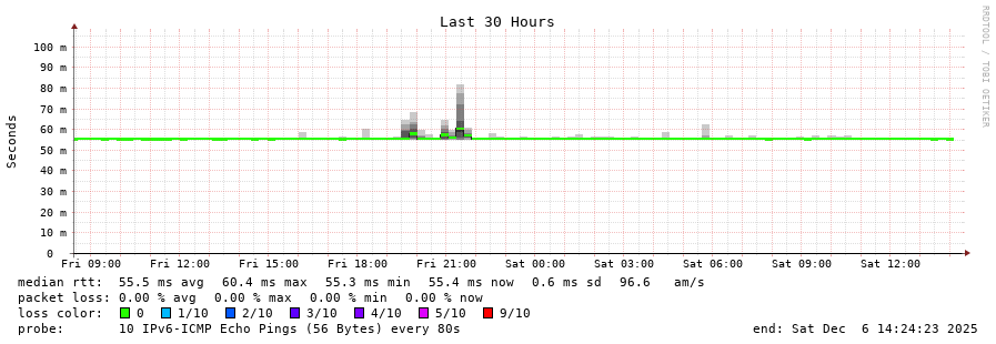 traceroute to 2a0b:2f00:0:234::151 (2a0b:2f00:0:234::151), 30 hops max, 80 byte packets - Generated at 2025-12-06 14:15:01