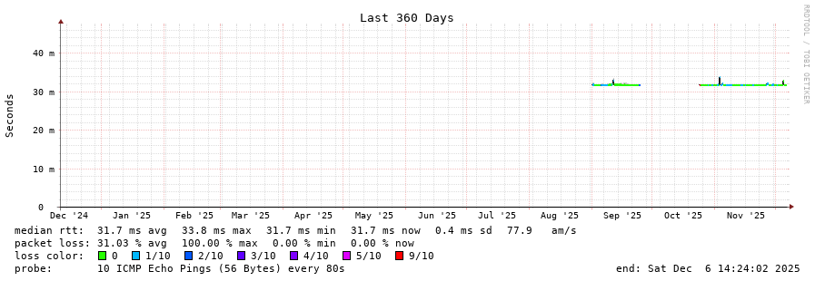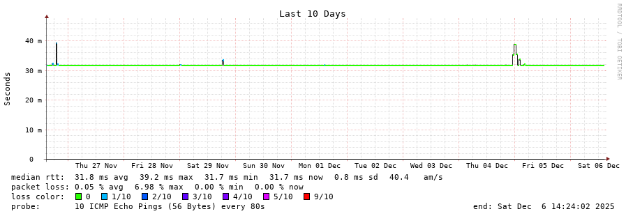 13 > smokeping.serverius.net (5.255.66.253) [AS50673] 31.708ms 31.631ms 31.670ms