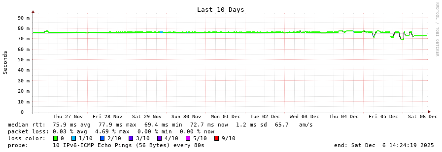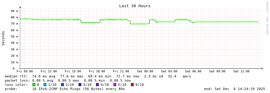 15 > 2001:67c:10:1102::11 (2001:67c:10:1102::11) [AS60149] 72.618ms 72.642ms 72.663ms