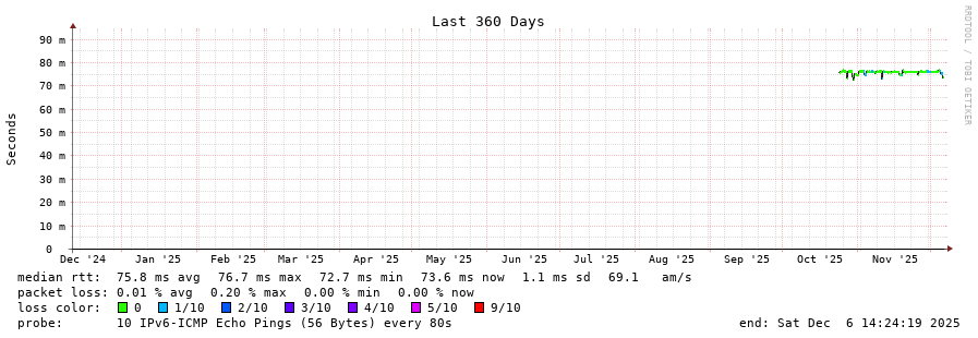 traceroute to 2001:67c:10:1102::11 (2001:67c:10:1102::11), 30 hops max, 80 byte packets - Generated at 2025-12-06 14:15:01