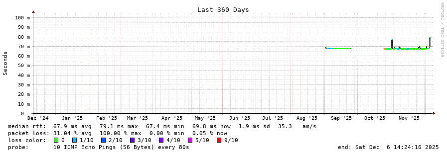 traceroute to 185.32.189.249 (185.32.189.249), 30 hops max, 60 byte packets - Generated at 2025-12-06 14:15:01