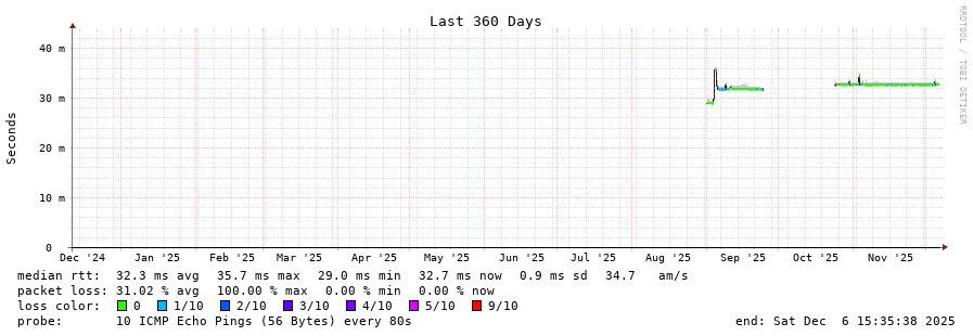 traceroute to 195.16.0.1 (195.16.0.1), 30 hops max, 60 byte packets - Generated at 2025-12-06 15:30:01