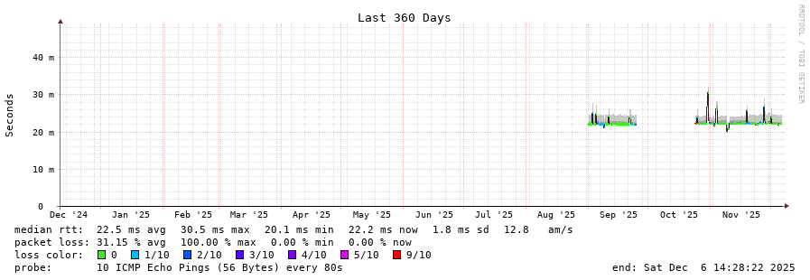 traceroute to 195.187.255.191 (195.187.255.191), 30 hops max, 60 byte packets - Generated at 2025-12-06 14:15:01