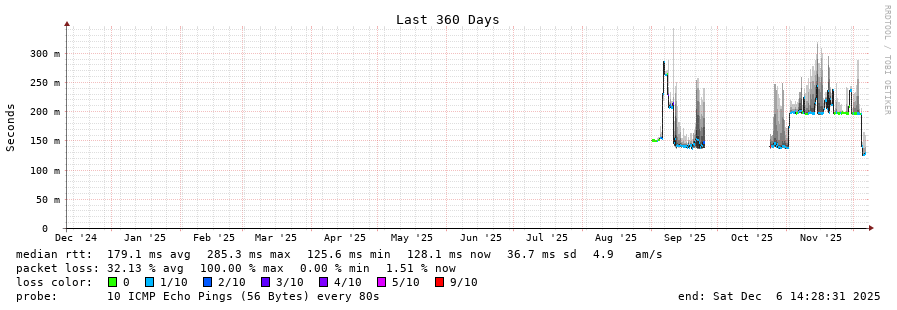 traceroute to 5.30.128.1 (5.30.128.1), 30 hops max, 60 byte packets - Generated at 2025-12-06 14:15:01