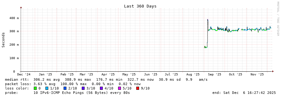 traceroute to 2402:1f00:8300:191:: (2402:1f00:8300:191::), 30 hops max, 80 byte packets - Generated at 2025-12-06 16:15:01