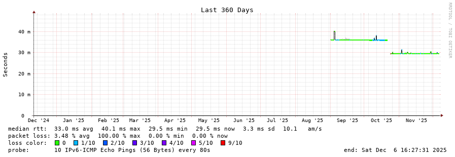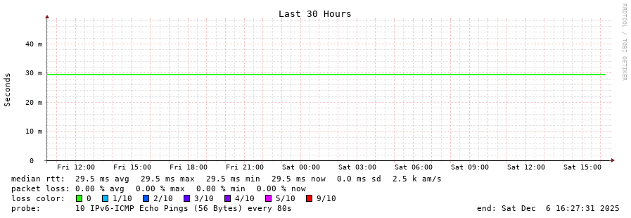 5 > ffm-bb2-v6.ip.twelve99.net (2001:2034:1:6c::1) [AS1299] 27.730ms 27.846ms 27.746ms