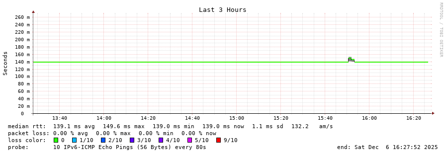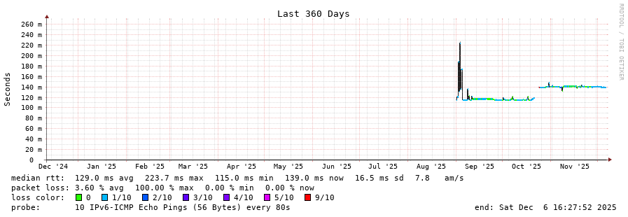 traceroute to 2604:2dc0:307::2:0:377 (2604:2dc0:307::2:0:377), 30 hops max, 80 byte packets - Generated at 2025-12-06 16:15:01