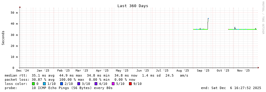 traceroute to 141.227.168.70 (141.227.168.70), 30 hops max, 60 byte packets - Generated at 2025-12-06 16:15:01