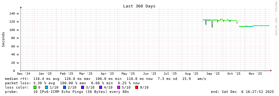 traceroute to 2604:2dc0:303::2:0:3d (2604:2dc0:303::2:0:3d), 30 hops max, 80 byte packets - Generated at 2025-12-06 16:15:01