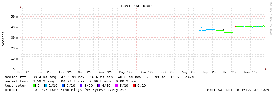 traceroute to 2001:41d0:ab05::2:0:261 (2001:41d0:ab05::2:0:261), 30 hops max, 80 byte packets - Generated at 2025-12-06 16:15:01