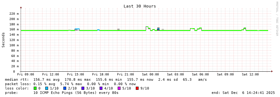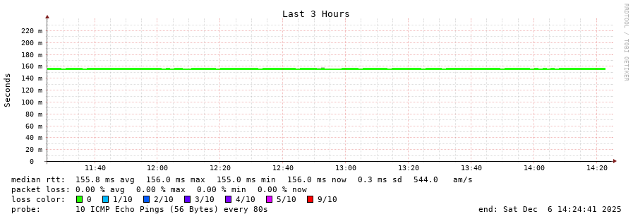 11 > 200.16.69.41 (200.16.69.41) [AS52320] 151.650ms 151.667ms 151.634ms
