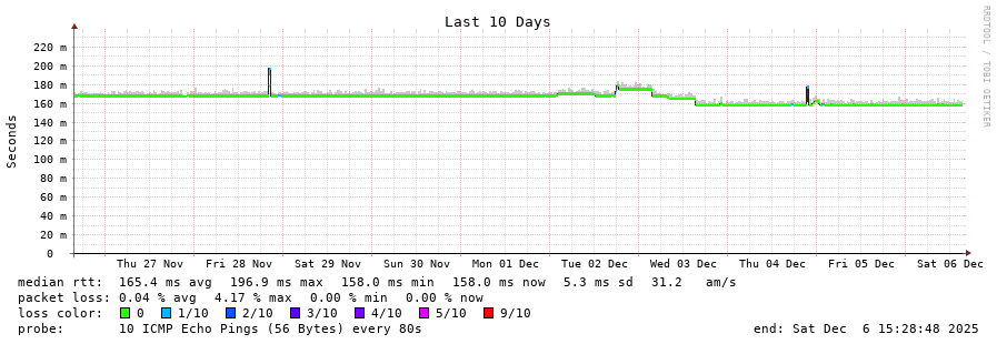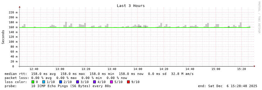 12 > 190.52.127.233 (190.52.127.233) [AS262182] 158.140ms 158.043ms 158.070ms