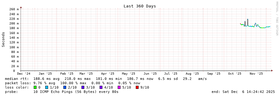 traceroute to 130.250.231.199 (130.250.231.199), 30 hops max, 60 byte packets - Generated at 2025-12-06 14:15:01