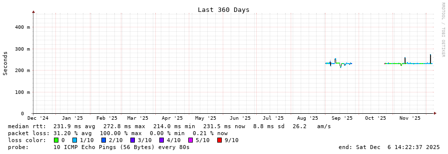 traceroute to 200.87.100.1 (200.87.100.1), 30 hops max, 60 byte packets - Generated at 2025-12-06 14:15:01