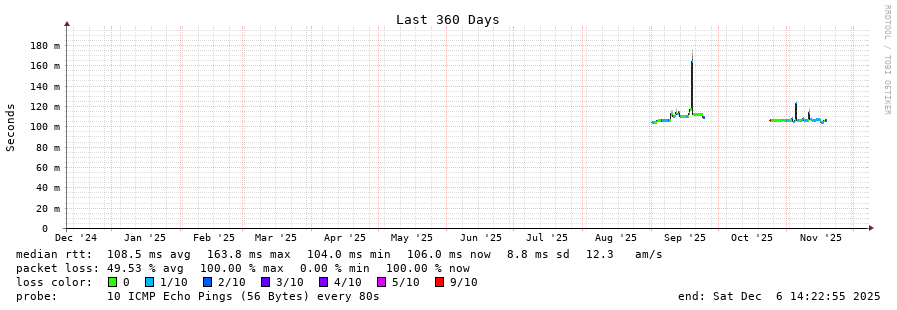 traceroute to 162.243.9.77 (162.243.9.77), 30 hops max, 60 byte packets - Generated at 2025-12-06 14:15:01