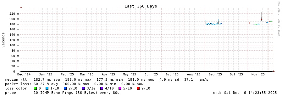 traceroute to 184.101.95.158 (184.101.95.158), 30 hops max, 60 byte packets - Generated at 2025-12-06 14:15:01