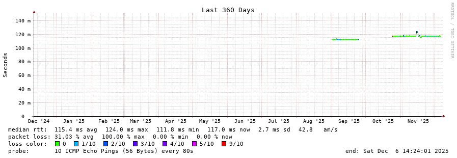 traceroute to 70.44.0.1 (70.44.0.1), 30 hops max, 60 byte packets - Generated at 2025-12-06 14:15:01