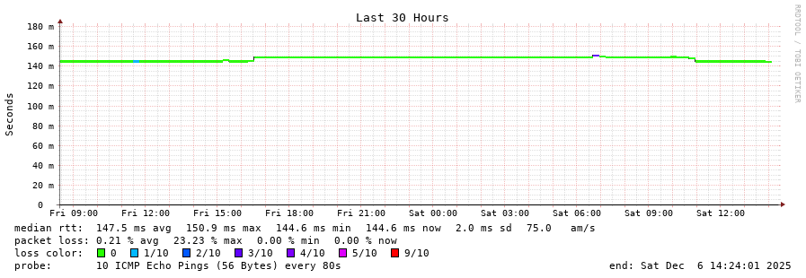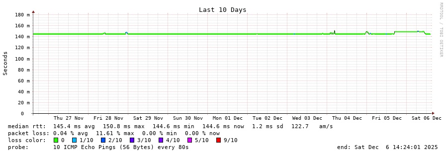 8 > 66.192.255.52 (66.192.255.52) [AS22362] 144.341ms 144.338ms 144.347ms