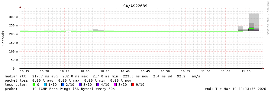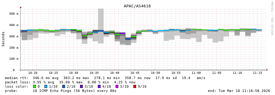 44. Max Roundtrip Time 0.303 seconds